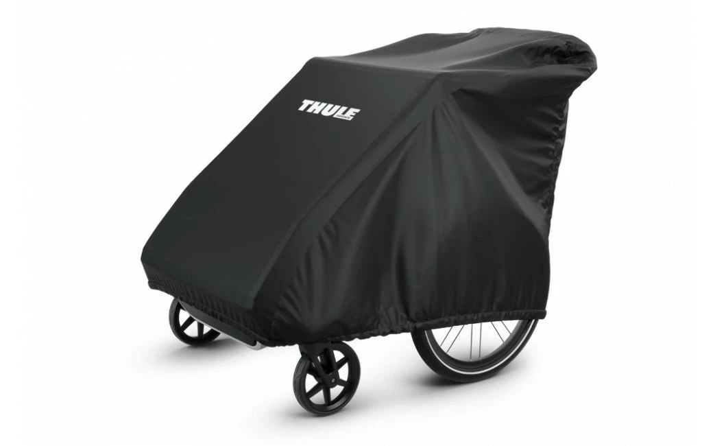 Housse en tissu robuste pour protéger votre remorque pour enfant Thule lorsque vous ne vous en servez pas.
