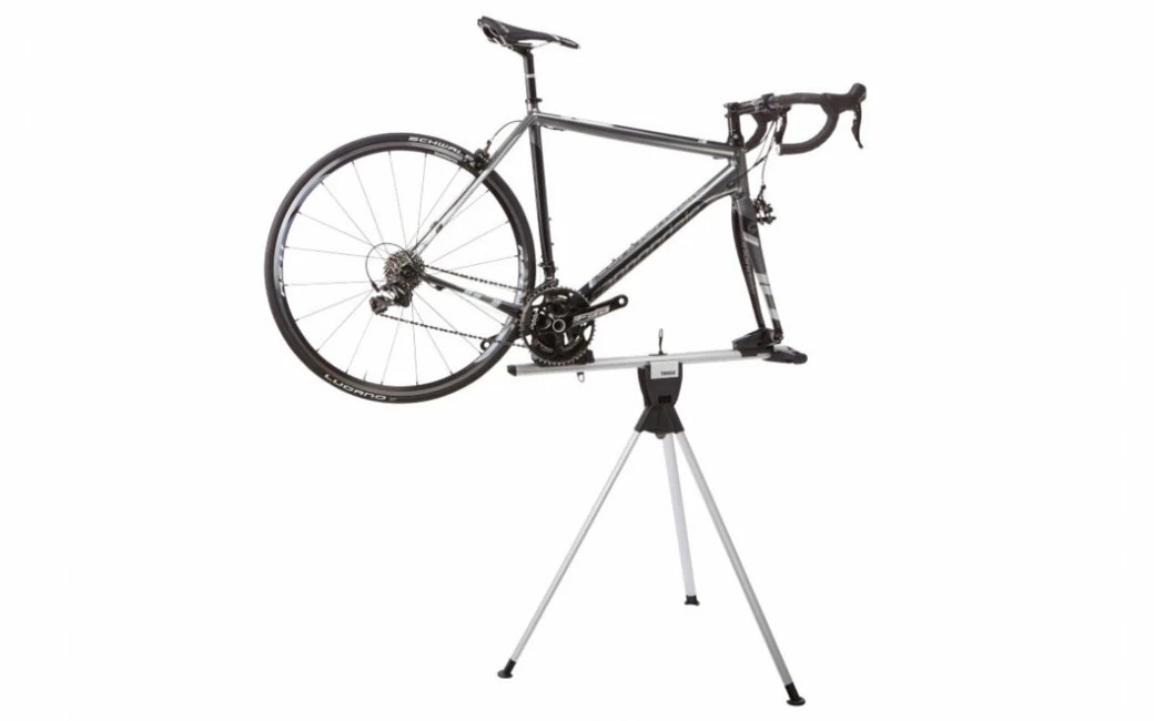 - Le trépied intégré sert de support pour monter/démonter ou ranger le vélo dans la valise.