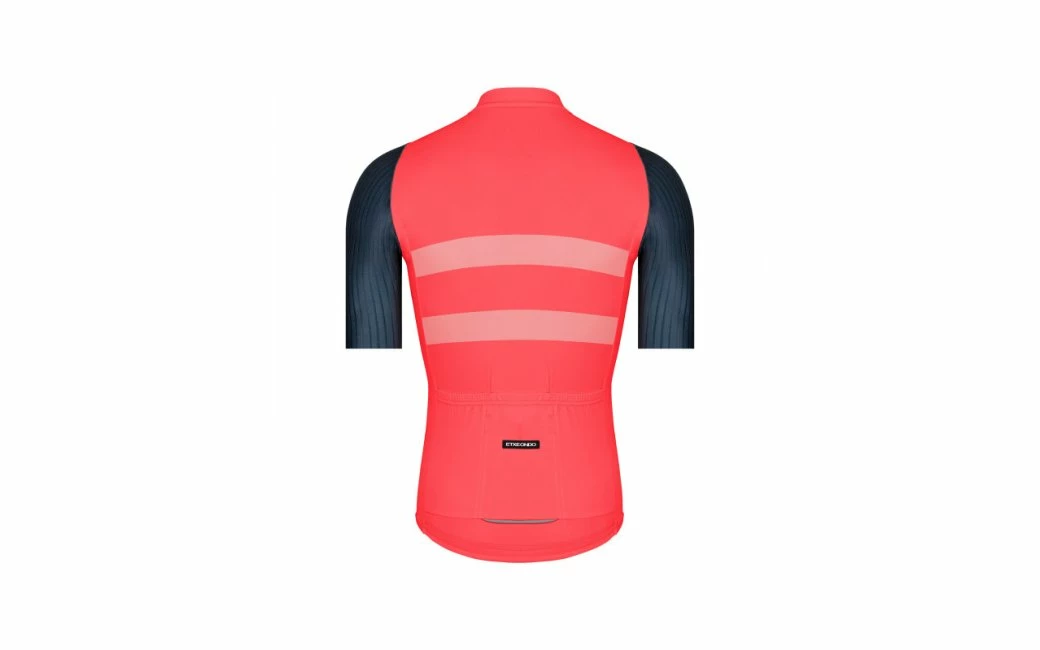 Les panneaux avant et arrière sont en tissu technique Endurance qui s’adaptent à la silhouette du pilote avec une compression appropriée, les manches aérodynamiques en tissu technique Neoair nervuré améliorent la résistance à l’air et s’adaptent complètement au bras du cycliste en évitant tout type de rides inconfortables et la finition de la manche n’utilise pas de couture ou de caoutchouc. La zone intérieure du col est surmontée d’une couverture de couture personnalisée qui améliore l’esthétique et la finition, l’empêchant de se déformer avec le temps.