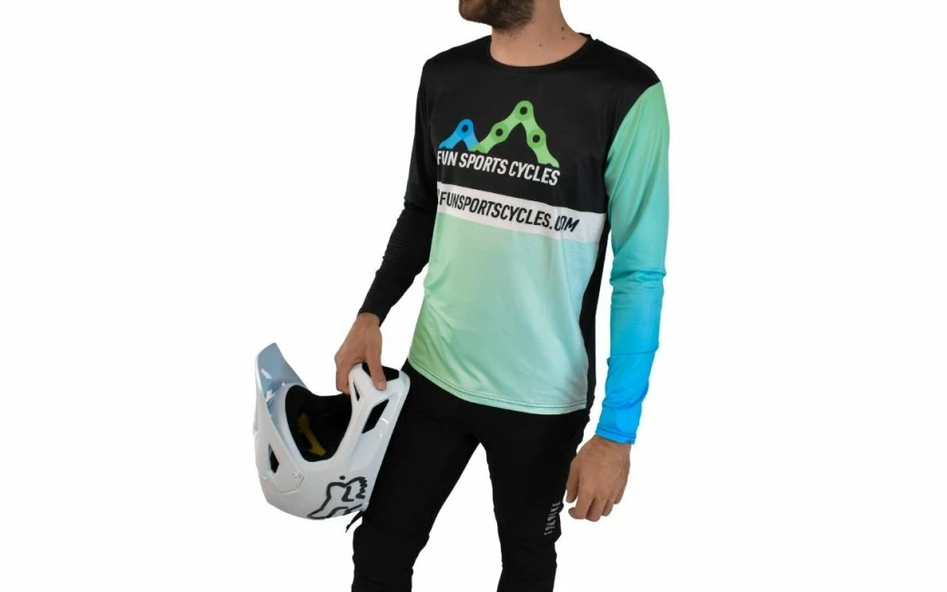 Le maillot de VTT Ă manches longues Fun Sports Cycles est dĂ©veloppĂ© pour l’Enduro et la DH. Il a Ă©tĂ© Ă©tudiĂ© pour des performances optimales, la maille en polyester offre la lĂ©gèretĂ© et le confort nĂ©cessaire pendant l’effort.