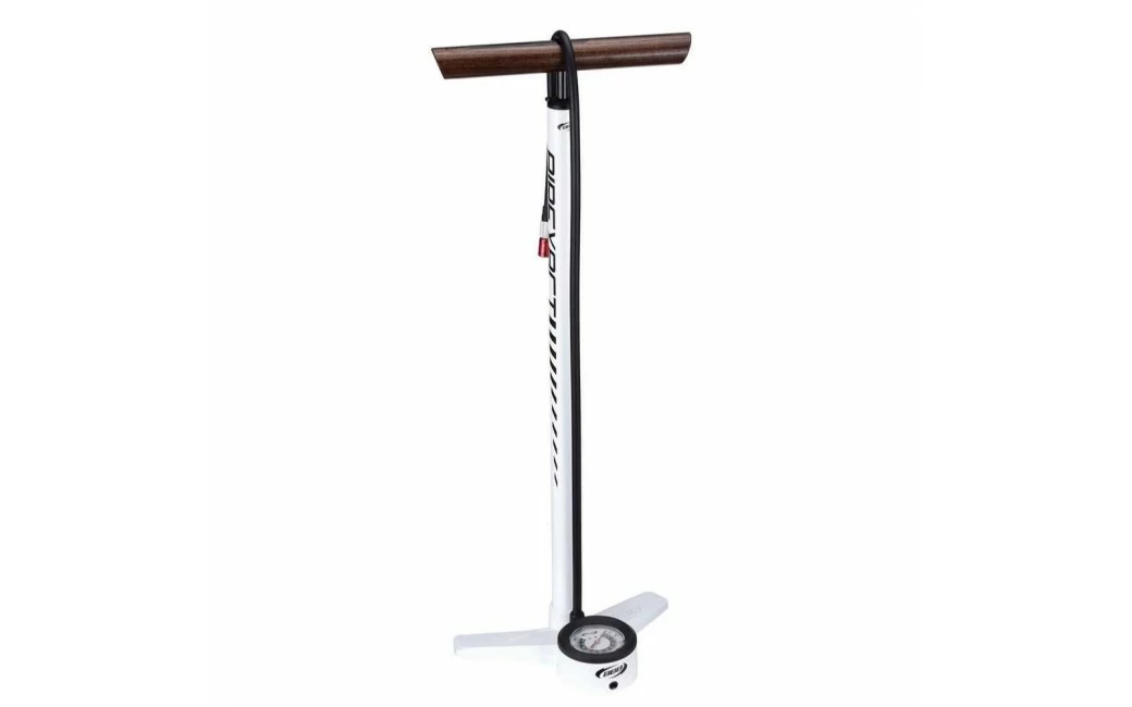 Pompe à pied à corps en aluminium extra-long. Gonfle jusqu’à 5. 5 bars / 80 psi. Le manomètre deux tons de 2. 5 pouces pour un affichage précis. Particulièrement adapté aux VTT. Affichage en bar et psi. Tête de pompe ThreadHead; son système de vissage unique sur la valve est compatible avec les valves Presta et Schrader. Poignée ergonomique en bois offrant une position de pompage naturelle plus ferme.Base stable en aluminium. Tuyau haute pression de 90 cm. Longueur totale de 70 cm. Adaptateur pour valves Dunlop inclus.
