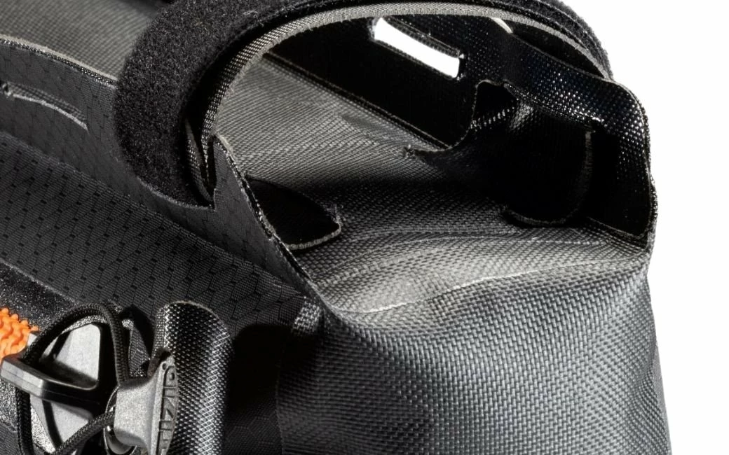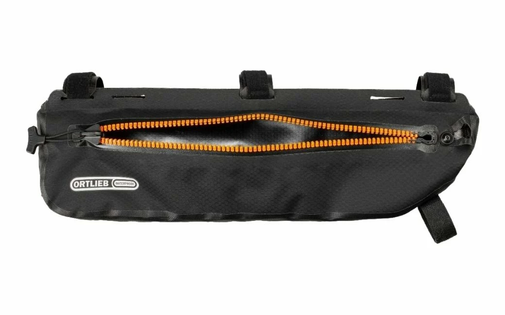 Il s’agit là d’une solution parfaitement étudiée pour tous ceux qui souhaitent certes caser des bagages dans le cadre mais ne veulent pas renoncer à leur gourde. Même les propriétaires de vélos tout terrain à suspension intégrale, qui limite l’espace dans le triangle du cadre, pourront ainsi caser des bagages dans le cadre. Avec un volume de quatre litres, la Frame-Pack Toptube d’ORTLIEB offre suffisamment d’espace pour ranger un équipement lourd comme des piquets de tente, des outils ou des provisions, placés sur le vélo à un centre de gravité bas. Étanchéité à l’eau garantie pour la sacoche mais également pour sa fermeture à glissière ; plus rien ne s’oppose donc à ton circuit bikepacking avec traversée de rivière.