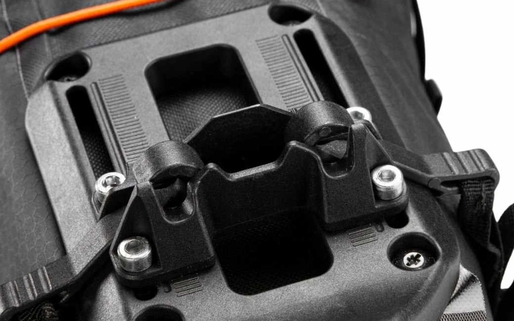 Grâce au système de fixation Seat-Lock, un produit innovant breveté, ce sac en toile de Nylon résistante à l’abrasion est d’une extrême stabilité, se monte en un rien de temps pour se démonter tout aussi rapidement sans laisser de traces. Grâce au collier adaptateur, le Seat-Pack QR convient même aux montants de selle abaissables puisqu’il n’a besoin que de 4,3 cm pour équiper la tige de selle Dropper Post. Son renfort intérieur et cinq sangles de compression garantissent la sécurité du contenu qui reste bien empaqueté. Une soupape avec boucle de prise favorise la compression du volume empaqueté, et le cordon élastique côté extérieur permet la fixation d’un équipement supplémentaire. Afin d’éviter tout dommage en cas de contact avec les pneus, le dessous du Seat-Pack QR est muni d’une plaque de protection qui fait aussi office de garde-boue.