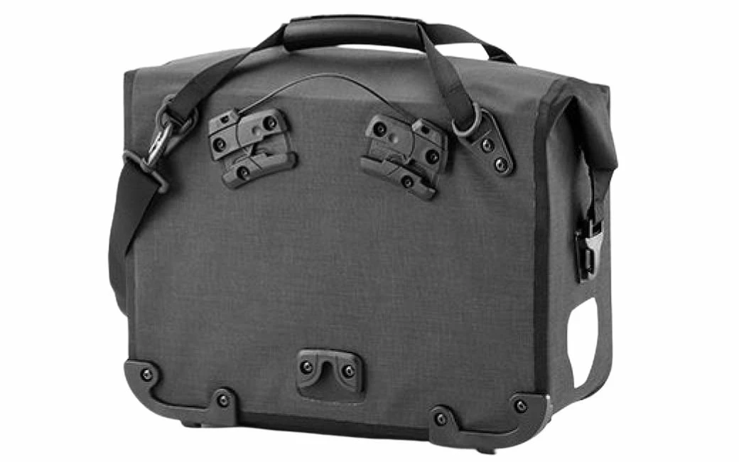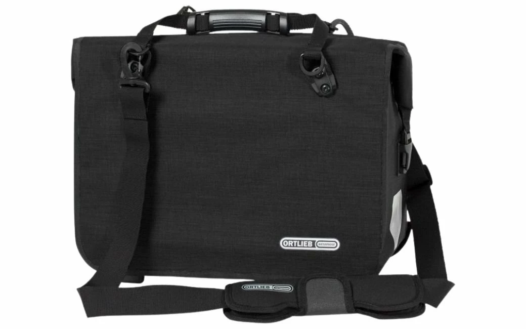 La sacoche-cartable étanche pour vélo, à fermeture par enroulement, peut se fixer à droite comme à gauche sur le porte-bagages et s’accroche ou se décroche en un tour de main. La sacoche Office-Bag offre suffisamment d’espace pour y ranger deux grands classeurs DIN A4 (taille L), les stylos, le mobile & Co. Elle est également parfaitement adaptée au transport de votre ordinateur portable, grâce à son insert spécial matelassé (accessoire vendu séparément). Deux éléments en « matériau 3M » ultra réfléchissant et le logo ORTLIEB réfléchissant (pas pour la variante au coloris argent) sur le devant de la sacoche garantissent d’être vu en cas de mauvaise visibilité ou dans l’obscurité. Un protège-arête au dos de la sacoche et des petits patins garantissent protection et bonne stabilité. La bandoulière matelassée assure le port confortable recherché.