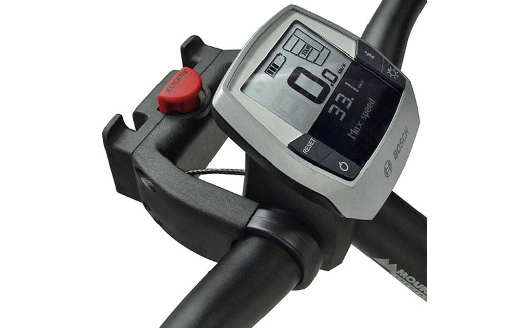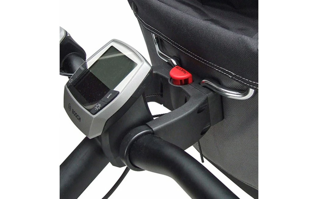 Le support de guidon Klickfix pour vĂ©lo Ă©lectrique est idĂ©al pour mettre un panier ou une sacoche de guidon quand l’ordinateur du vĂ©lo se place au niveau de la potence.